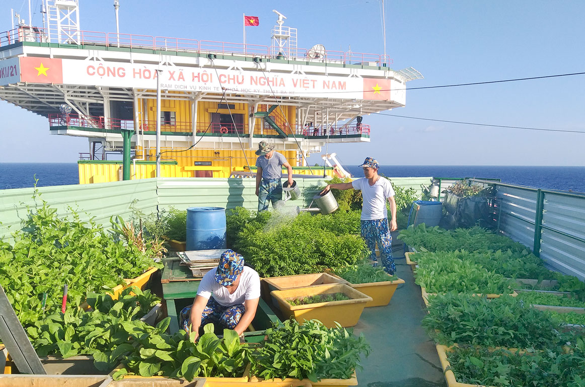 Trên những nhà giàn giữa trùng khơi, các chiến sĩ Hải quân kiên cường bám trụ, gắn bó với biển trời quê hương suốt 8 đến 12 tháng. Các chiến sĩ ăn trên sóng biển, ngủ gối đầu lên sóng, đối đầu với sóng dữ và bão tố giữa trùng khơi. Cuộc sống nơi đây giản dị và còn nhiều thiếu thốn. Những bữa ăn chính thường là cá tươi ngon câu từ biển, thỉnh thoảng được cải thiện bằng thịt gia súc, gia cầm nuôi tại nhà giàn. Rau xanh tươi tốt trồng trong các chậu, mang hơi thở của đất liền giữa biển khơi bao la. Nguồn nước ngọt, yếu tố quan trọng cho đời sống hằng ngày, phụ thuộc vào lượng mưa mỗi năm