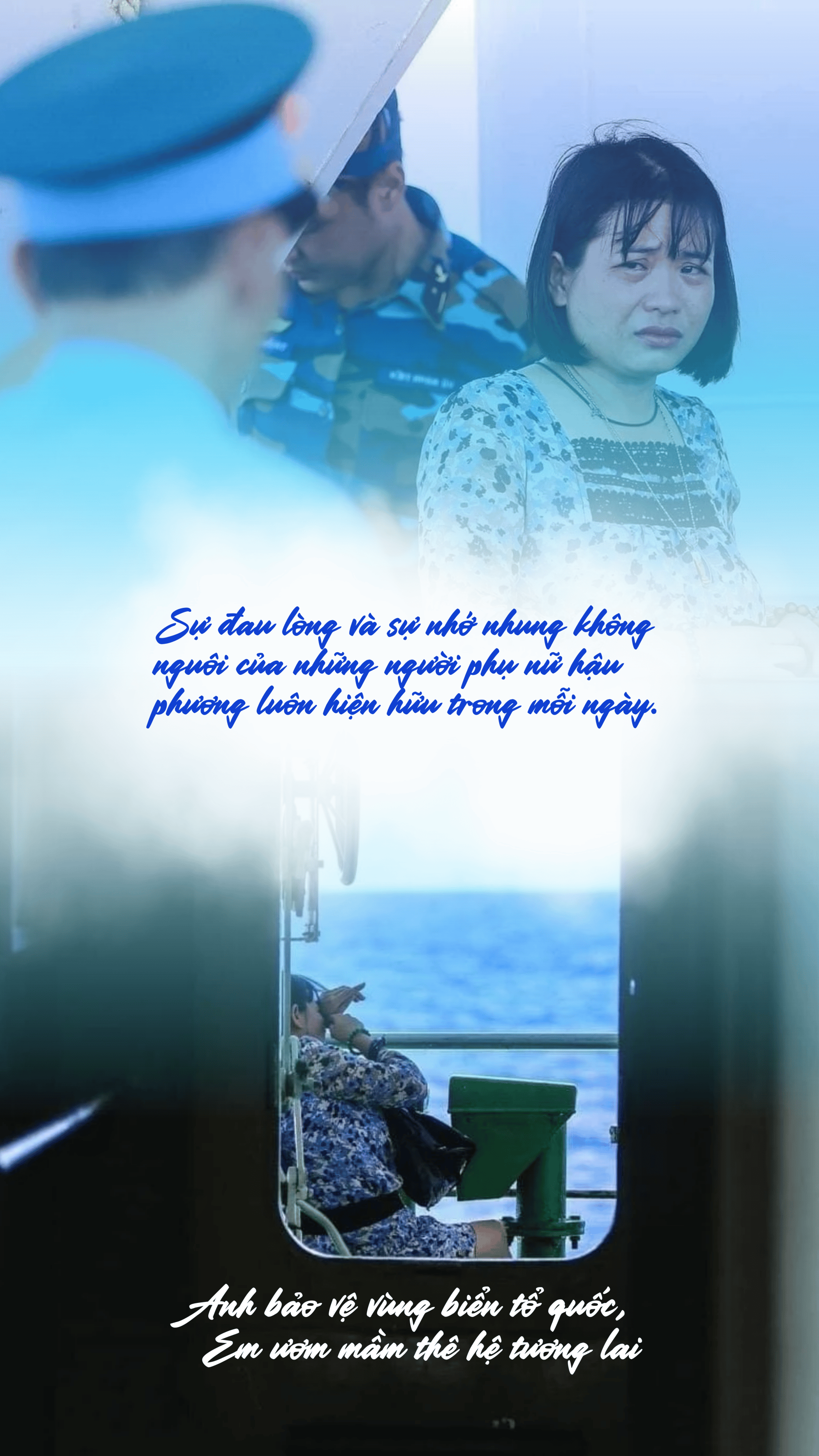 Sự đau lòng và sự nhớ nhung không nguôi của những người phụ nữ là vợ hậu phương luôn hiện hữu trong mỗi ngày. Họ lo lắng về an toàn, cuộc sống hàng ngày và thậm chí cả bữa ăn cho người chồng của mình, người đang canh giữ ở đầu tiên tuyến của quốc gia. Cuộc sống của các lính hải quân tại các quần đảo, đặc biệt là Trường Sa, thật sự vô cùng khó khăn và đầy thách thức mà không phải ai cũng hiểu được.